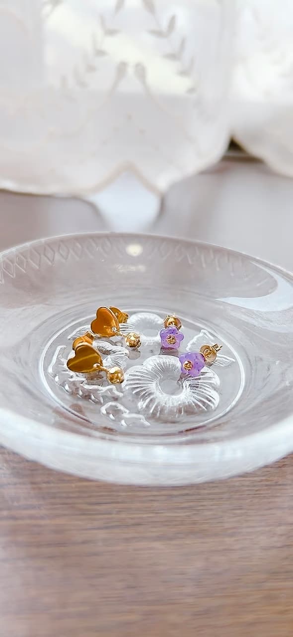 チェコガラスのお花の絶妙なカラーリングは可愛くなり過ぎずにおしゃれに身に着けられます♡
